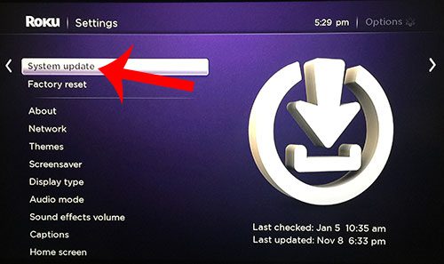 Εάν υπάρχει διαθέσιμη ενημέρωση, τότε θα μπορείτε να την εγκαταστήσετε. Σημειώστε ότι η εγκατάσταση μιας ενημέρωσης ενδέχεται να απαιτήσει την επανεκκίνηση του Roku 1.