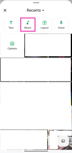 Βήμα 5:Χτυπήστε τοεικονίδιο μουσικής σημείωνΣτην κορυφή της οθόνης. Εναλλακτικά, πατήστε το εικονίδιο αυτοκόλλητου και επιλέξτεΜουσική.
