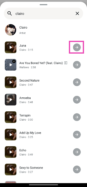 Βήμα 7:Χτυπήστε τοεικονίδιο βέλουςΔίπλα στο τραγούδι που θέλετε να δημοσιεύσετε.