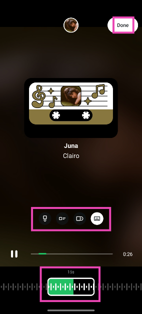 Βήμα 8:Χρησιμοποιήστε τοαναζητούν μπαρΣτο κάτω μέρος της οθόνης για να επιλέξετε το τμήμα του τραγουδιού που θέλετε να δημοσιεύσετε. Επιπλέον, μπορείτε να αλλάξετε τοσχέδιοτουέργα τέχνης άλμπουμπατώντας μία από τις επιλογές στην οθόνη.