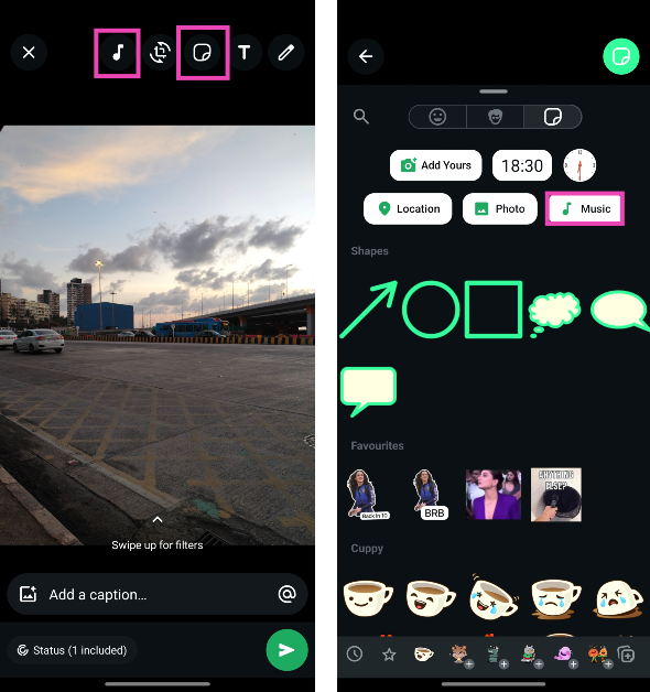 Προσθέστε μουσική σε μια εικόνα ή ένα βίντεο που θέλετε να δημοσιεύσετε ως κατάσταση WhatsApp