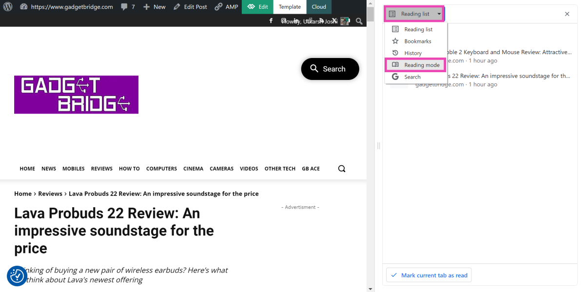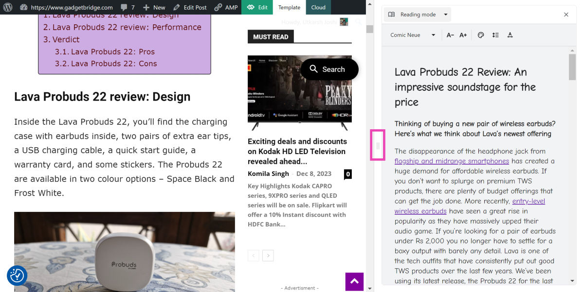 Μόλις ανοίξετε ένα άρθρο σχετικά με τη λειτουργία ανάγνωσης, το πρώτο πράγμα που πρέπει να κάνετε είναι να ρυθμίσετε το πλάτος του πίνακα. Σύρετε τον πίνακα από το αριστερό του σύνορο και μετακινήστε το προς τα αριστερά για να επεκτείνετε το μέγεθός του. Αυτό θα επιτρέψει στο άρθρο να πάρει το επίκεντρο της οθόνης σας, ενώ η ιστοσελίδα ωθείται στο πλάι. Εάν μεταβείτε σε διαφορετική καρτέλα και ανοίξετε ένα διαφορετικό άρθρο, θα φορτώσει αυτόματα στον πίνακα ανάγνωσης.