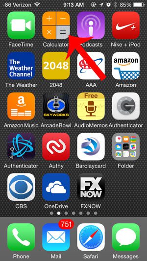 Βήμα 1: Ανοίξτε τοΑριθμομηχανήεφαρμογή. Εάν δεν μπορείτε να το βρείτε, μπορεί να βρίσκεται σε έναΕπιπλέωνΦάκελος στη δεύτερη αρχική οθόνη σας. Μπορείτε να σπάσετε προς τα αριστερά στην αρχική σας οθόνη για να εντοπίσετε αυτόν τον φάκελο.