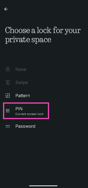 Βήμα 1: Τσίμπημα δεξιάαπό το συρτάρι εφαρμογής και εισαγάγετε την κλειδαριάΚωδικός πρόσβασης/pin/pattern/δακτυλικό αποτύπωμαγια πρόσβαση στον ιδιωτικό χώρο.
