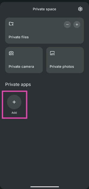 Βήμα 4:Χτυπήστε τοσυν εικονίδιοστην ενότητα Ιδιωτικών αρχείων στοπροσθέστε αρχείακαιεικόνεςαπό την εσωτερική αποθήκευση του τηλεφώνου σας στον ιδιωτικό χώρο.