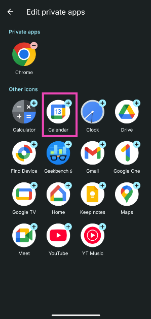 Βήμα 2:Χτυπήστε τοσυν εικονίδιοδίπλαΙδιωτικές εφαρμογέςΓια να μετακινήσετε εφαρμογές από το τηλέφωνό σας στον ιδιωτικό χώρο.