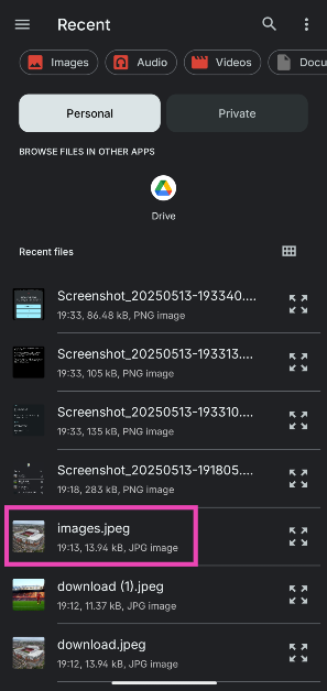 Μεταβείτε στο χώρο απορρήτου μεταφέροντας ακριβώς στο συρτάρι της εφαρμογής, πατήστε το εικονίδιο συν την ενότητα Ιδιωτικών αρχείων και πατήστε την εικόνα που θέλετε να προσθέσετε στο χώρο.