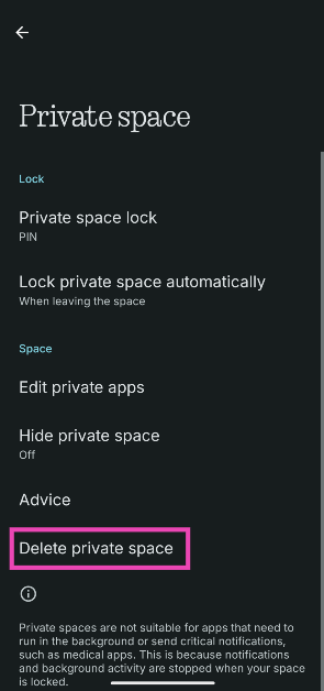 Μεταβείτε στον ιδιωτικό χώρο, πατήστε το εικονίδιο γραναζιών και πατήστε στο 'Διαγραφή ιδιωτικού χώρου'.