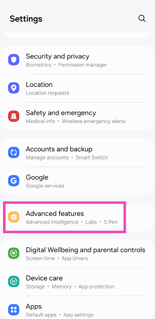 Βήμα 1:ΠηγαίνωΡυθμίσειςκαι επιλέξτεΠροχωρημένες λειτουργίες.