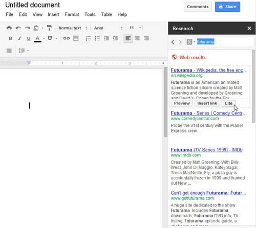 Τέλος, εάν κάνετε κλικ στοΠρεμιέραΤο κουμπί, μια προεπισκόπηση της σελίδας αποτελεσμάτων αναζήτησης θα εμφανιστεί στα αριστερά του ερευνητικού εργαλείου, επιτρέποντάς σας να δείτε μια προεπισκόπηση της σελίδας αποτελεσμάτων χωρίς να αφήσετε το έγγραφό σας.