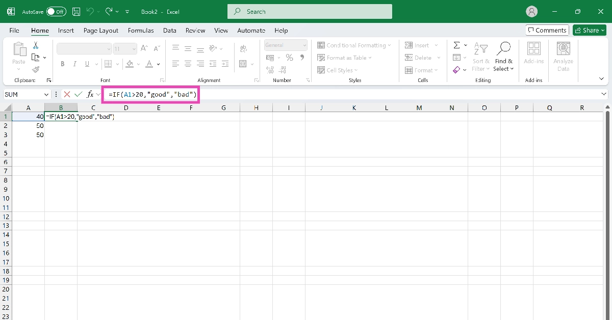 Επιλέξτε το κελί στο οποίο θέλετε να εφαρμόσετε τον τύπο, κάντε κλικ στη γραμμή τύπου και εισάγετε= Αν (logical_test, [value_if_true], [value_if_false]).Αντικαταστήστε το σύμβολο κράτησης θέσης για το "logical_test" με την κατάσταση, "value_if_true" με την έξοδο εάν η κατάσταση είναι αληθής και "value_if_false" με την έξοδο εάν η κατάσταση είναι ψευδής.