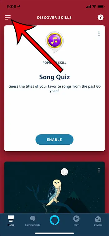 Στις νεότερες εκδόσεις της εφαρμογής Alexa, αυτό το μενού τριών γραμμών βρίσκεται στην κάτω δεξιά γωνία της οθόνης.