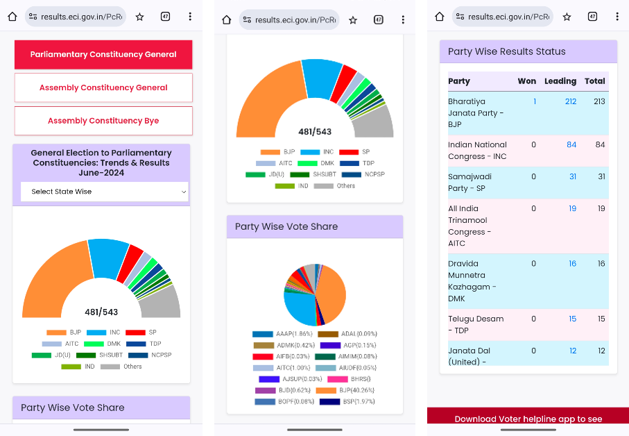 Μεταβείτε στην ιστοσελίδα της ECI ή κατεβάστε την εφαρμογή βοήθειας ψηφοφόρων στο τηλέφωνό σας για να παρακολουθείτε τα αποτελέσματα των εκλογών.