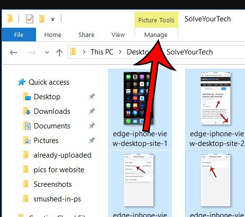 Βήμα 3: Επιλέξτε τοΔιαχειρίζομαιεπιλογή στο επάνω μέρος του παραθύρουΕργαλεία εικόνας.