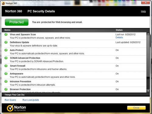 - Ελέγξτε την κατάσταση κάθε στοιχείου Norton.