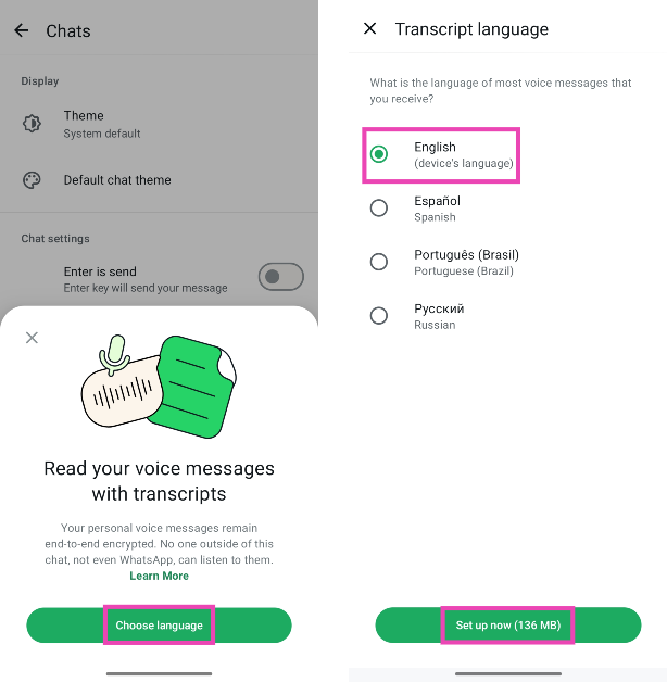Το WhatsApp δεν δηλώνει εάν χρησιμοποιεί το AI για να μεταγράψει φωνητικές σημειώσεις. Ωστόσο, δεδομένου ότι απαιτεί ένα πακέτο γλώσσας για μεταγραφή, είναι πιθανό ότι η διαδικασία λαμβάνει χώρα στην ίδια τη συσκευή.