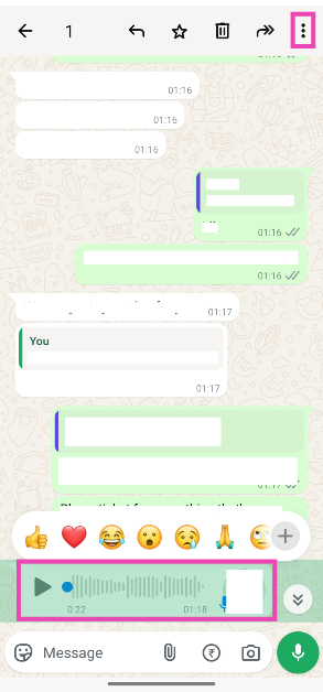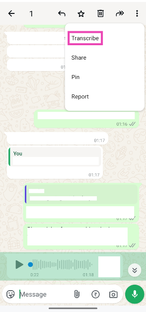 Βήμα 1:Μόλις έχετεενεργοποιημένοςΜεταγραφές φωνητικού μηνύματος από ρυθμίσεις, ανοίξτε οποιοδήποτεσυνομιλίακαι μετακινηθείτε σε μια φωνητική σημείωση.