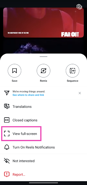 Ενώ η λειτουργία πλήρους οθόνης του Instagram για τους reels κάνει τη δουλειά, έχει ένα σημαντικό μειονέκτημα. Όταν μετακινηθείτε μέσω των κυλίνδρων, πρέπει να ενεργοποιήσετε τη λειτουργία πλήρους οθόνης για κάθε βίντεο ξεχωριστά. Αυτό θέτει ένα αποσβεστήρα στην εμπειρία προβολής όταν είστε binge-watching reels. Δεδομένου ότι η επιλογή πλήρους οθόνης είναι τοποθετημένη μακριά στις πρόσθετες επιλογές, χρειάζονται μερικές βρύσες για να επεκτείνονται το περιεχόμενο.