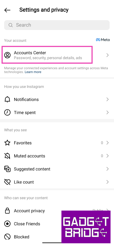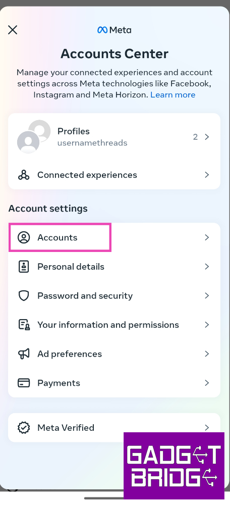Στην εφαρμογή Instagram, μεταβείτε στοΠροφίλ> μενού> Ρυθμίσεις και ιδιωτικότητα> Κέντρο λογαριασμών> Λογαριασμοίκαι προσθέστε τον λογαριασμό σας στο Facebook χρησιμοποιώντας τα κατάλληλα διαπιστευτήρια.