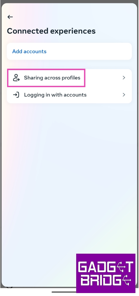 Για να ενεργοποιήσετε την αυτόματη κοινή χρήση μεταξύ Instagram και Facebook, μεταβείτε στοΠροφίλ> μενού> Ρυθμίσεις και ιδιωτικότητα> Κέντρο λογαριασμών> Συνδεδεμένες εμπειρίες> Κοινή χρήση σε προφίλ. Επιλέξτε το προφίλ Instagram και ενεργοποιήστε τους διακόπτες εναλλαγής για ιστορία, αναρτήσεις και ρόλους.