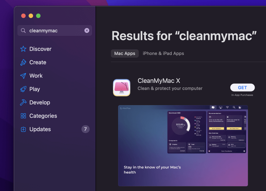Μια κοινή εσφαλμένη αντίληψη είναι ότι το CleanMYMAC X δεν βρίσκεται στο επίσημο κατάστημα εφαρμογών. Εάν κάνετε οποιαδήποτε έρευνα στην εφαρμογή, θα βρείτε πολλές κριτικές σε απευθείας σύνδεση υποστηρίζοντας ότι αυτό το πρόγραμμα δεν αναφέρεται στο App Store.