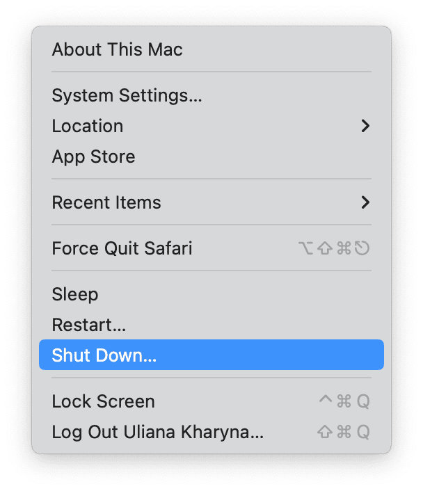 - Κλείστε το Mac σας.