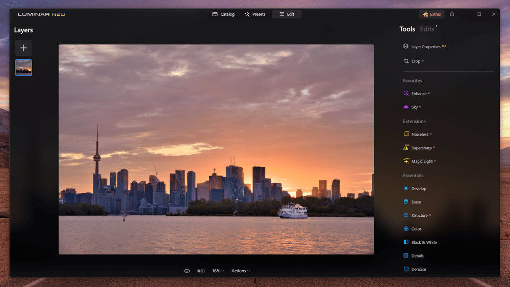 Συγκριτικά, τα χαρακτηριστικά επεξεργασίας στρώματος του Luminar είναι ένα από τα πιο αδύναμα σημεία του. Το σύστημα είναι σημαντικά καλύτερο από ό, τι ήταν σε προηγούμενες εκδόσεις, αλλά το Skylum δεν περιμένει να φτιάξετε σύνθετες φωτορεαλιστικές σύνθετες εικόνες όπως μπορείτε στη φωτογραφία συγγένειας.