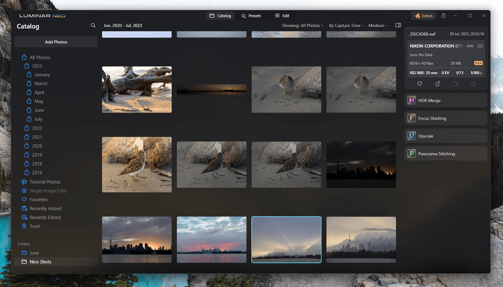 Αυτή η κατηγορία μπορεί να φαίνεται λίγο άδικη, καθώς είναι ένα πλήρες δώρο για το Luminar Neo, παρόλο που έχει μόνο πολύ βασικά εργαλεία διαχείρισης βιβλιοθήκης στην ενότητα καταλόγου της. Όταν τοποθετείται σε σύγκριση με σχεδόν οποιοδήποτε επεξεργαστή φωτογραφιών εκτός από τη φωτογραφία συγγένειας, ο Luminar πιθανότατα θα χάσει, αλλά παίρνει ένα ελεύθερο πέρασμα εδώ, αφού η φωτογραφία Affinity δεν περιέχει καθόλου εργαλεία διαχείρισης βιβλιοθήκης.