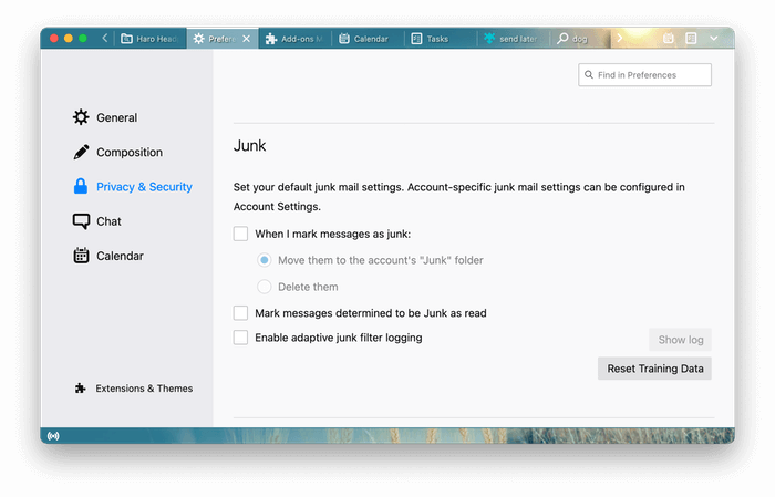 Το Thunderbird χρησιμοποιεί τεχνητή νοημοσύνη για να καθορίσει εάν ένα μήνυμα είναι spam και το μετακινεί αυτόματα στο φάκελο Junk. Μαθαίνει επίσης από την εισήγησή σας καθώς επισημαίνετε τα μηνύματα που χάθηκε ως σκουπίδια ή ενημερώστε ότι οποιαδήποτε ψευδή θετικά δεν είναι.