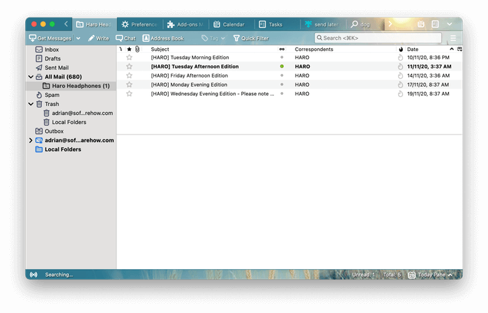 Βροντήείναι ένας μακροχρόνιος πελάτης ηλεκτρονικού ταχυδρομείου που διατίθεται σε κάθε σημαντικό λειτουργικό σύστημα επιφάνειας εργασίας. Είναι αρκετά ισχυρό και δεν κοστίζει τίποτα. Η εφαρμογή προσφέρει μια ισχυρή λειτουργία αναζήτησης, επιταγές για ανεπιθύμητη αλληλογραφία και σας δίνει τη δυνατότητα να δημιουργήσετε περίπλοκες κανόνες για να οργανώσετε αυτόματα τα μηνύματα ηλεκτρονικού ταχυδρομείου σας. Μπορείτε να προσθέσετε περισσότερες λειτουργίες χρησιμοποιώντας το πλούσιο οικοσύστημα του plugin.
