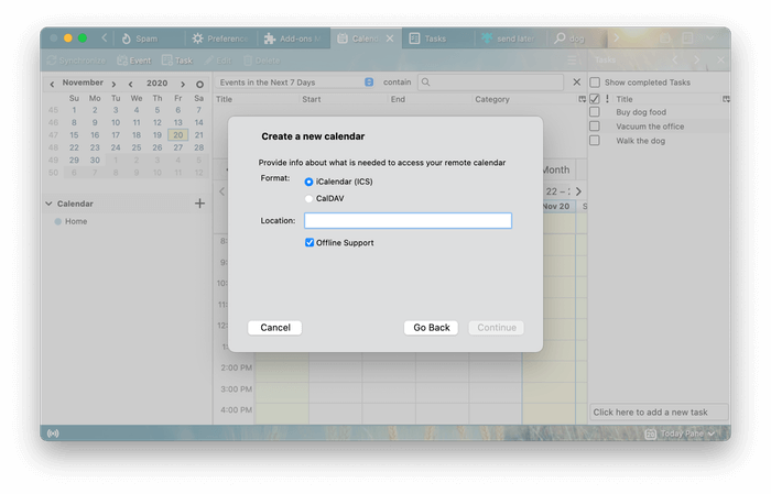Η ενσωμάτωση του Thunderbird είναι ισχυρότερη. Η εφαρμογή διαθέτει το δικό της ημερολόγιο, τη διαχείριση εργασιών, τις επαφές και τη λειτουργικότητα συνομιλίας. Τα εξωτερικά ημερολόγια (ας πούμε ένα ημερολόγιο Google) μπορούν να προστεθούν είτε μέσω του Icalendar είτε του Caldav. Αυτή η ενσωμάτωση δεν είναι μόνο για την προβολή πληροφοριών. Σας επιτρέπει να αναλάβετε δράση. Για παράδειγμα, οποιοδήποτε μήνυμα ηλεκτρονικού ταχυδρομείου μπορεί να μετατραπεί γρήγορα σε συμβάν ή εργασία.