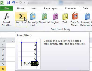 Το πιο συνηθισμένο πράγμα που έχω τρέξει με τα αρχεία Excel είναι απλά προσθέτοντας μια δέσμη αριθμών μαζί. Αυτό ισχύει ιδιαίτερα σε επιχειρηματικά σενάρια, όπου πολλές παραγγελίες και αναφορές θα είναι τεράστια υπολογιστικά φύλλα με κύτταρα που πρέπει να προστεθούν μαζί για να προσδιοριστούν η συνολική αξία μιας πώλησης. Έχω δει προσωπικά τους ανθρώπους να προσθέτουν χειροκίνητα τιμές σε excel μαζί, οι οποίες σχεδόν νικούν το σκοπό του προγράμματος. Το Excel περιλαμβάνει έναΑυτοθεραπείακουμπί, που βρίσκεται στοΤύποιBar, που θα προσθέσει μια σειρά αριθμών για εσάς αυτόματα. Κάντε κλικ στοΑυτοθεραπείακουμπί, επισημάνετε τα κύτταρα που θέλετε να προσθέσετε μαζί, το πάτημαΕισάγω. Το συνολικό σύνολο των κυττάρων θα εμφανιστεί στο πρώτο κελί κάτω από ή στα δεξιά των κυττάρων που επιλέξατε.