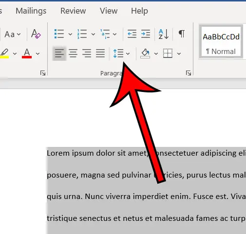 Βήμα 4: Κάντε κλικ στοΑπόσταση γραμμών και παραγράφωνκουμπί στοΠαράγραφοςΤμήμα της κορδέλας.