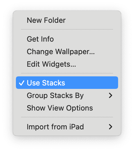 Εάν χρησιμοποιείτε στοίβες, είναι εύκολο να ξεχάσετε τι κρύβεται στην επιφάνεια εργασίας σας. Κάντε δεξί κλικ οπουδήποτε στην επιφάνεια εργασίας σας και πατήστε χρησιμοποιήστε στοίβες για να αποκαλύψετε τι κρύβεται.