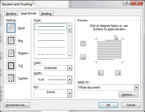 - Επιλέξτε τοΣύνορα της σελίδαςκουμπί.