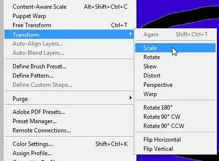 Βήμα 4: Κάντε κλικΜετασχηματίζω, στη συνέχεια κάντε κλικΚλίμακα.