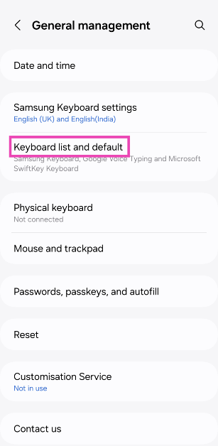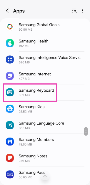 Βήμα 3:ΜελετώΠροεπιλεγμένο πληκτρολόγιοκαι επιλέξτεΠληκτρολόγιο Samsung.