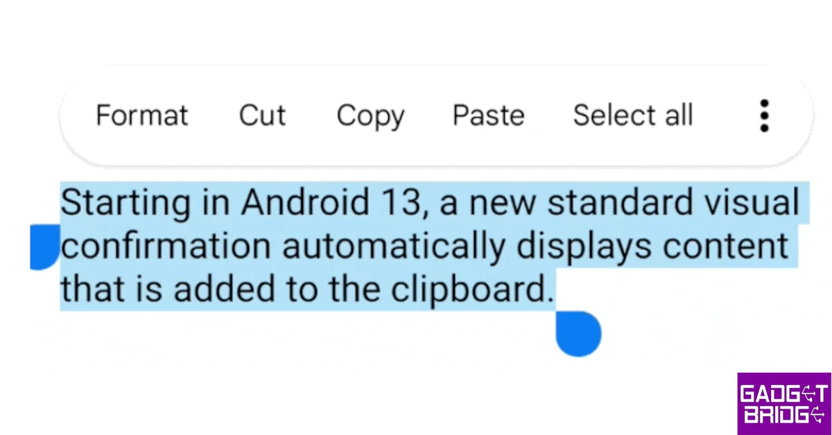 Το Android 13 έχει βελτιωμένες επιλογές αντιγραφής. Αφού αντιγράψετε κάτι που εμφανίζεται ένα μικρό πλωτό πλαίσιο όπου μπορείτε να επεξεργαστείτε το περιεχόμενό σας. Μπορείτε επίσης να αντιγράψετε από μια συσκευή στην άλλη που έχει τον ίδιο λογαριασμό Gmail. Για να προστατεύσετε το απόρρητό σας, το ιστορικό σας θα διαγραφεί αυτόματα μετά από 1 ώρα.
