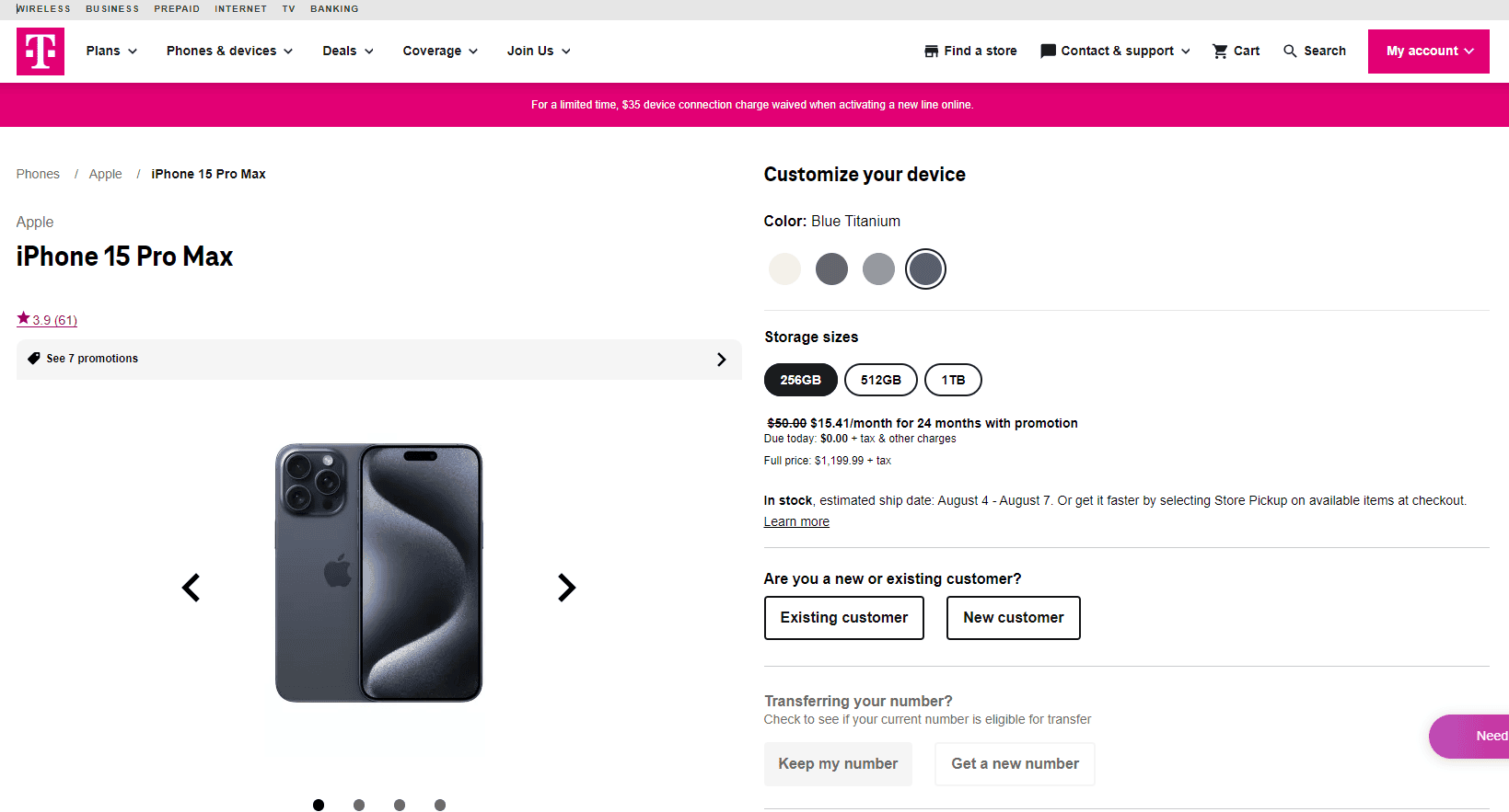 | AT & T | Λάβετε το iPhone 15 Pro σε εμάς | Το εμπόριο απαιτούσε έως και $ 1000 με ελάχιστο. $ 290 εμπορική αξία. |