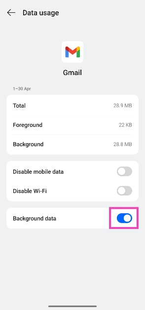 Βήμα 5:Ενεργοποιήστε το διακόπτη εναλλαγής δίπλα στοΔεδομένα φόντου.