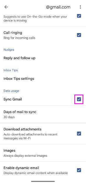 Εάν ο συγχρονισμός ηλεκτρονικού ταχυδρομείου είναι απενεργοποιημένος στο τηλέφωνό σας, δεν θα μπορείτε να δείτε παλιά μηνύματα ηλεκτρονικού ταχυδρομείου στην εφαρμογή Gmail. Μεταβείτε στις ρυθμίσεις λογαριασμού στο τηλέφωνό σας ή στην εφαρμογή Gmail για να το διορθώσετε.