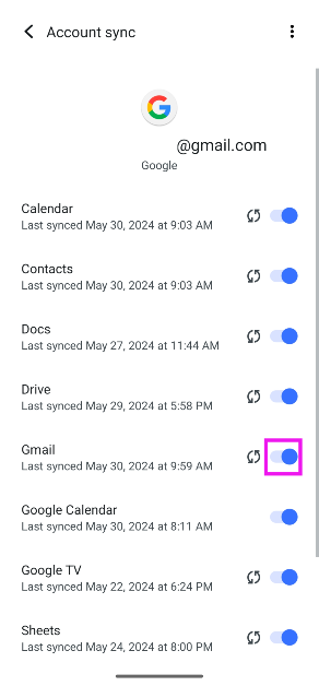 Βήμα 4:Πατήστε το πλαίσιο ελέγχου γιαΣυγχρονισμός Gmail.