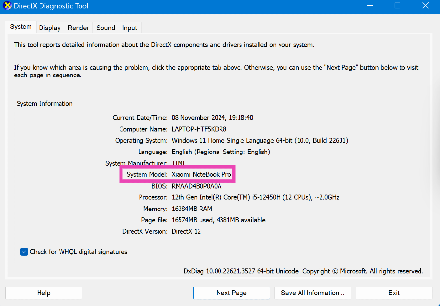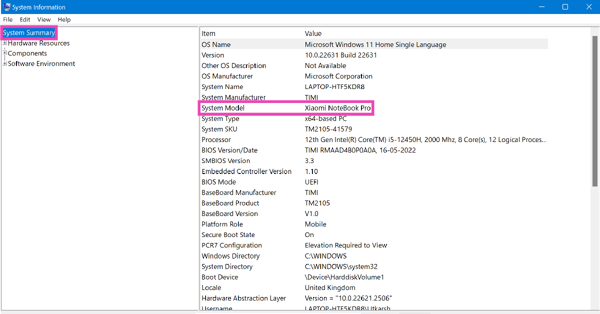 Βήμα 3:Πηγαίνετε στοΠληροφορίες συστήματοςΚατηγορία για να βρείτε το όνομα/τον αριθμό του μοντέλου του φορητού υπολογιστή σας.