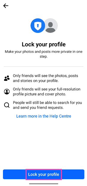 Το κλείδωμα του προφίλ σας στο Facebook το καθιστά ιδιωτικό και περιορίζει την ορατότητα των δημοσιεύσεών σας, των βίντεο, των φωτογραφιών και άλλου περιεχομένου στους ανθρώπους της λίστας φίλων σας. Οι άνθρωποι που δεν είναι φίλοι σας στο Facebook δεν θα μπορούν να δουν τις αναρτήσεις σας.