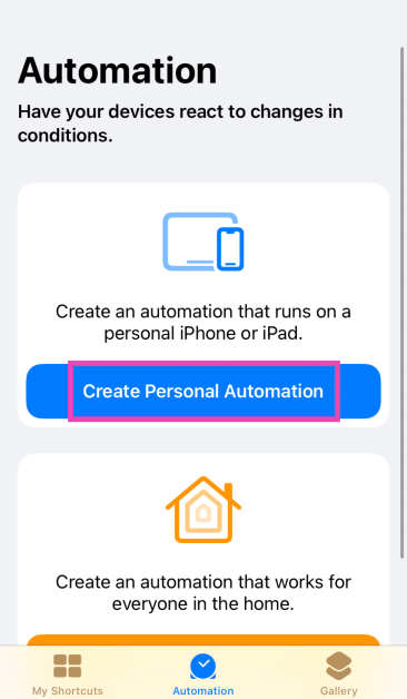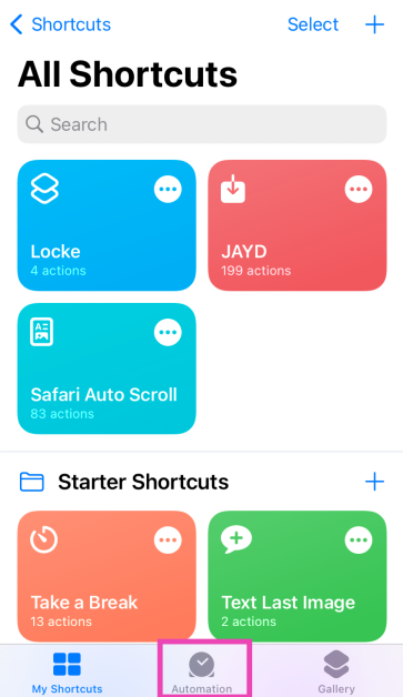 Βήμα 1:Εκκινήστε τοΕφαρμογή συντομεύσεωνστο iPhone σας και μεταβείτε στοΑυτοματοποίησηαυτί.