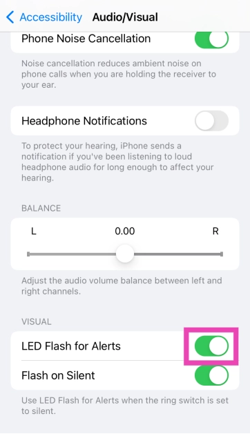 Μπορείτε να ενεργοποιήσετε τις ειδοποιήσεις φλας LED όταν το iPhone σας βρίσκεται σε σιωπηλή λειτουργία πηγαίνονταςΡυθμίσεις> AccessIbilty> Audio/Visual> LED Flash για ειδοποιήσειςκαι ενεργοποιώντας το διακόπτη εναλλαγής γιαΦλας σε σιωπηλή λειτουργία.