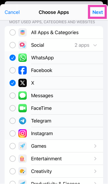 Βήμα 5:Επιλέξτε τοεφαρμογέςΘέλετε να κλειδώσετε. Περάστε από τοκατηγορίεςγια να δείτε τις εφαρμογές.