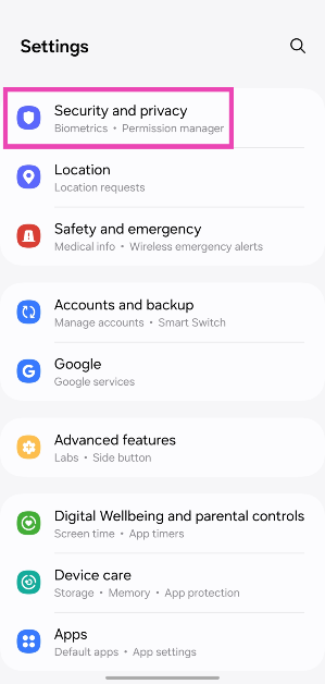 Βήμα 1:ΠηγαίνωΡυθμίσειςκαι επιλέξτεΑσφάλεια και ιδιωτικότητα.