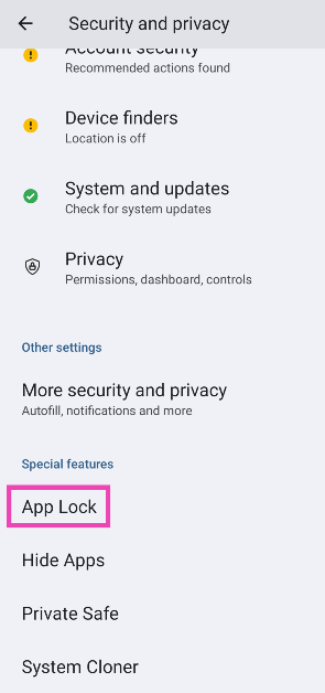 Κάθε OEM Android έχει διαφορετική μέθοδο εφαρμογών κλειδώματος με κωδικό πρόσβασης. Θα βρείτε συνήθως αυτήν την επιλογή στην ενότητα "Ασφάλεια και ιδιωτικότητα" στις ρυθμίσεις της συσκευής.