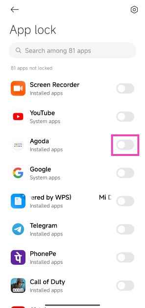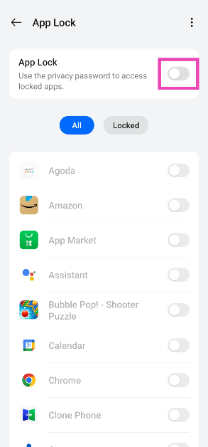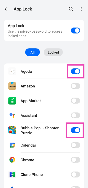 Βήμα 4:Ενεργοποιήστε τοδιακόπτης εναλλαγήςΓια την εφαρμογή που θέλετε να κλειδώσετε.